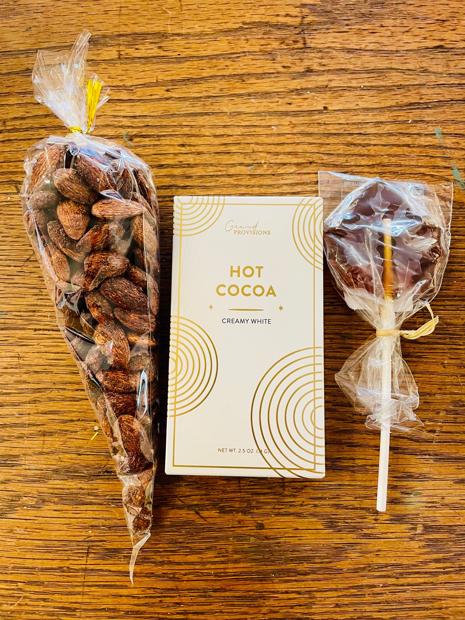 FALL BUNDLE Creamy White Cocoa, Sugar Bob’s apple pie maple almonds, maple lollipop